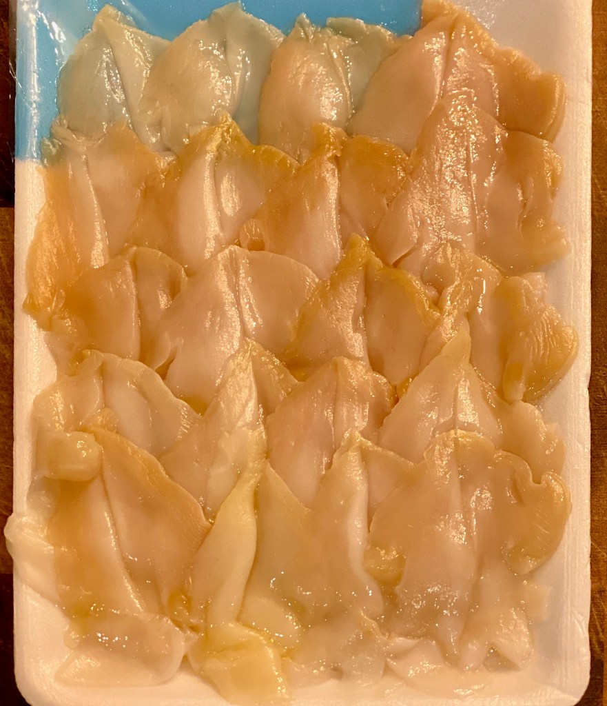 今日は、大好きな”つぶ貝”のお刺身を使って、一品作りました。ツブのコリコリ食感と、