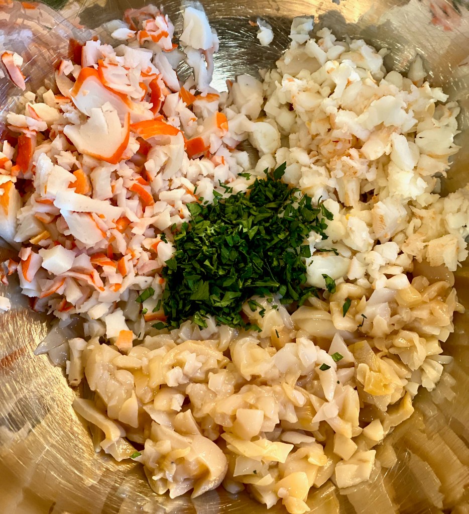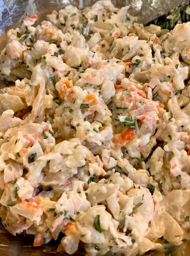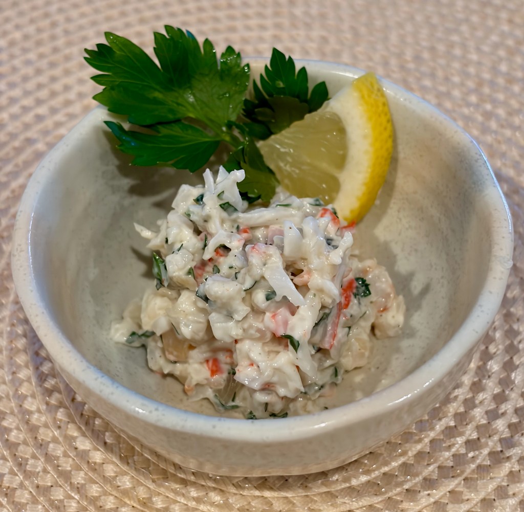 緒に楽しめるように、各具材を細かく切って、味付け、マヨネーズで和えました。レモン